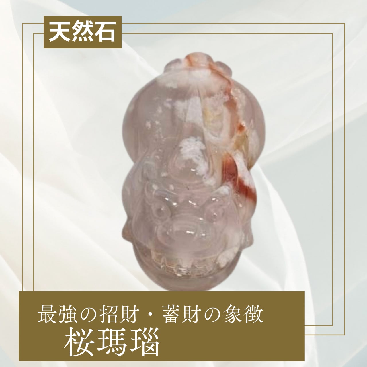 力強い貔貅のエネルギーに、桜瑪瑙の優しさが加わります。強引に稼ぐのではなく、